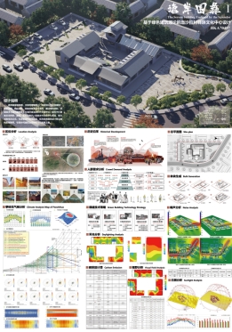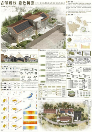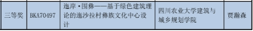 图为闫亮老师、张丽丽老师、魏沂轩老师指导的三等奖作品《古韵新枝·绿色转型——四川乡居传统建筑绿色节能普适性改造设计》