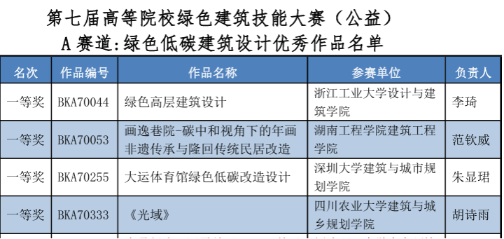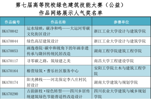 近日,第七届“高等院校绿色建筑技能大赛(公益)”全国决赛公布获奖名单。91网站