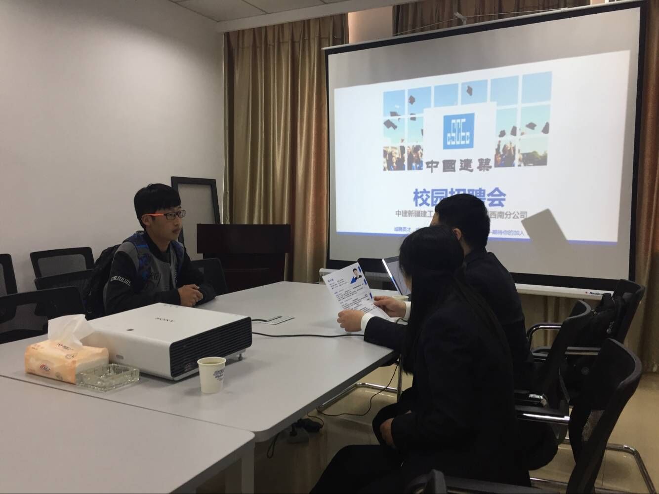 北京市建筑设计研究院有限公司成都分公司的招聘现场显得不太“热闹”,招聘主管和学生们轻松交谈,从网络游戏到四川美食,从团队建设到创新意识,从设计方式到设计体验,招聘现场的氛围很难看出他们在招聘。招聘主管周女士谈到“我们要招聘的不是画图匠,而是建筑设计师,所以我们一点不担心现场人少,我们就是希望深入交谈,优中选优;我们需要打破流水线设计方式,使大家体会69年技术传承带来的底蕴,所以我们需要有底蕴的‘创意’”。