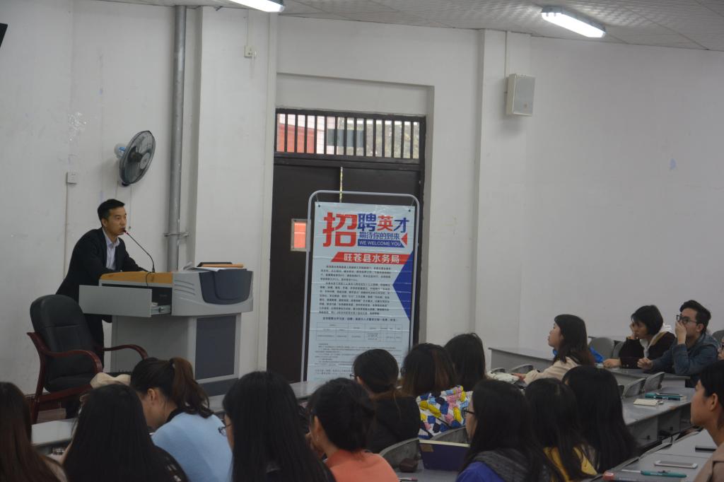 广元市旺苍县县委组织部宣讲会现场座无虚席,会上,组织部负责人从“什么是事业单位”、“怎么考取事业单位”、“考前需要做哪些准备”给在座的同学进行培训,随后,她简要介绍了“广元市特殊人才创新创业十条支持措施”及紧缺人才引进办法。旺苍县交通运输局、国土资源局及城乡规划建设和住房保障局的负责人围绕岗位需求、薪酬待遇、福利政策、编制管理、发展前景等方面对招聘岗位进行详细介绍。10余名有意愿的学生填写了《就职意愿登记表》,建筑与土木工程研究生李敏同学说到:“高校招聘机会来之不易,如果遇到心仪的事业单位,可以踊跃去尝试,把握住每一次机会,为自己的事业发展多加考虑”。